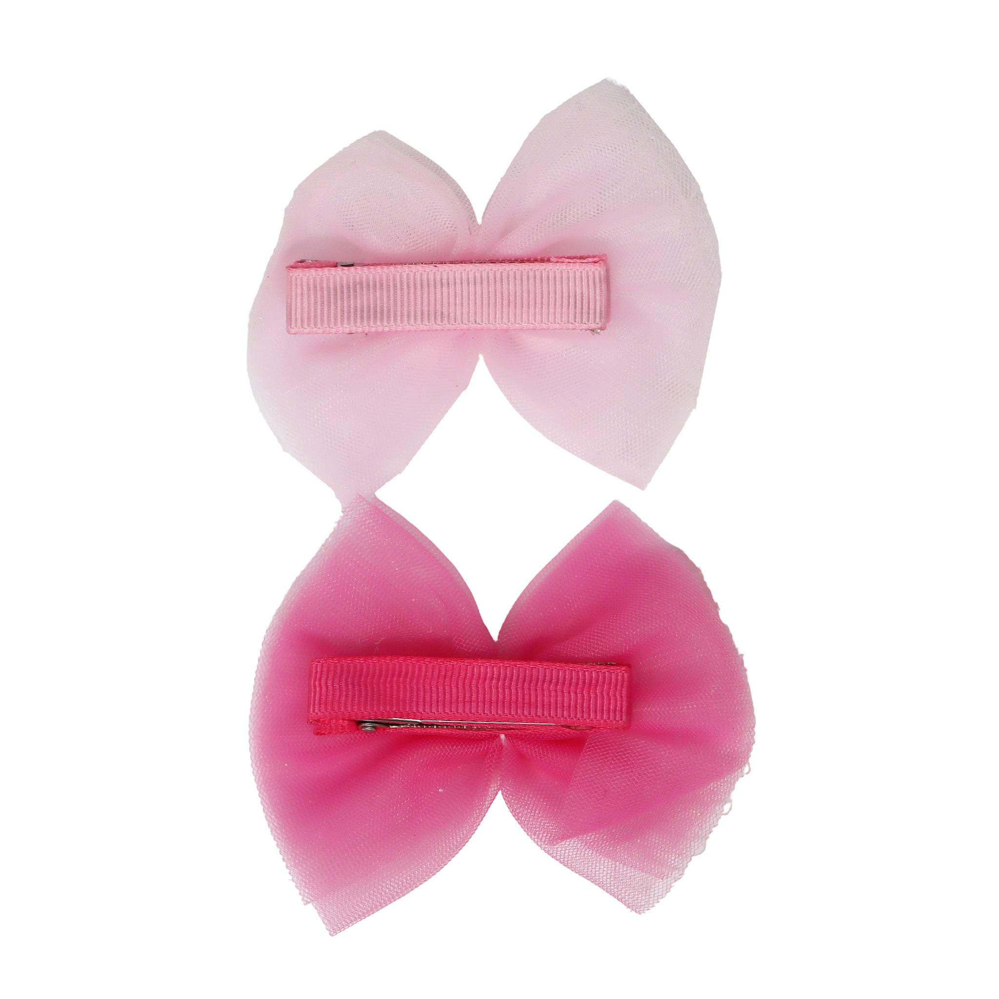 This set includes two different pastel-coloured hair clips, designed with a soft tulle fabric bow, shimmering netting, and a delicate glittering butterfly detail featuring a pearlised gem centrepiece for extra shine.