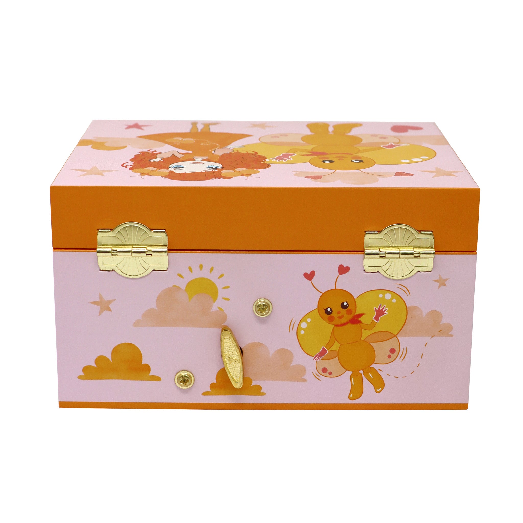 Wind it upand see inside, a rotating framed figurine of Emma Memma and BB Butterflytwirling to the tune “Twinkle Twinkle Little Star”.