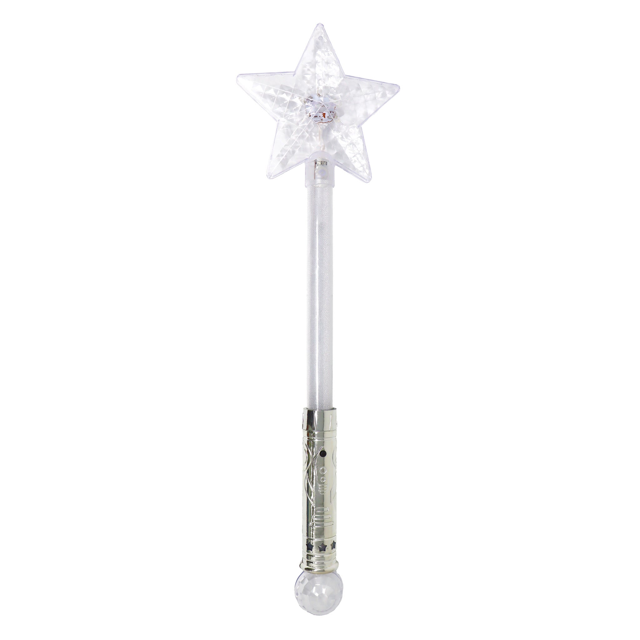 Bring your fantasies to life with Pink Poppy's Magical star light-up wand. This wand is decorated in a shinny silver coloured handle with with rainbow LED lights inside. This fun accessory has 3 light functions: Strobe, Flash, & Fast Colour Change. To activate, simply remove the isolation tab & press the button on the handle. This wand is the perfect gift to introduce some magic into play time!