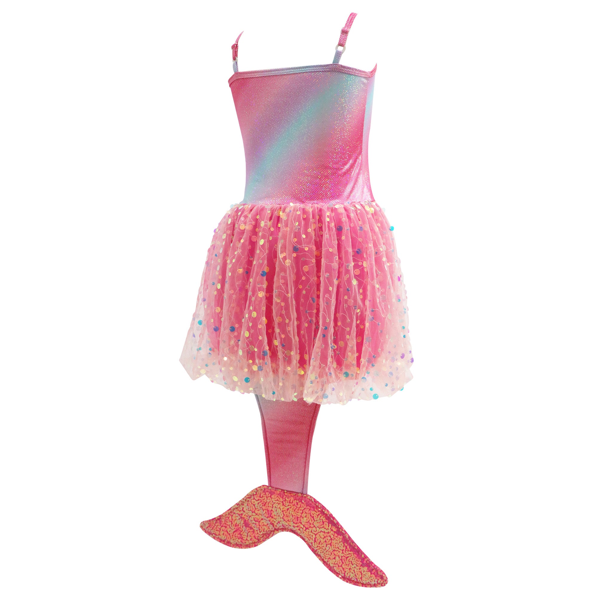 Pink Poppy's Mermazing Mermaid Dress with Tail is the ultimate outfit for any little mermaid! Designed in captivating mermaid colours, it boasts a beautiful bubble skirt with shimmering sequins with a soft hot pink lining. The bodice is adorned with a gorgeous mermaid coloured print and sparkles in the light with every move they make. Complete with a mermaid-like tail at the back, with hot pink sequins at the bottom it adds an extra touch of enchantment that will keep them dancing and feeling mer-mazing all day long!