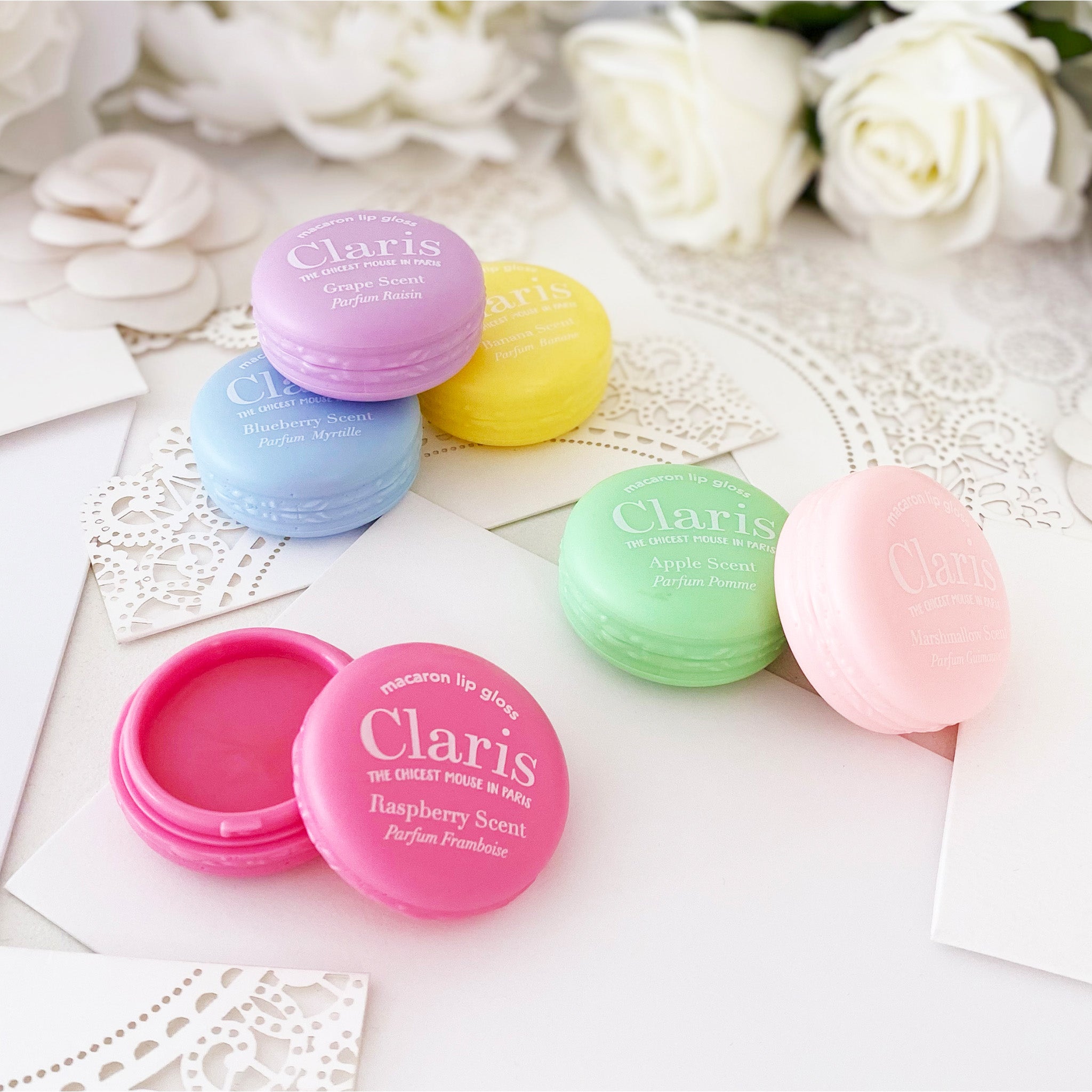 Macarons! Claris's absolute favorite treat! The Claris Macaron Lip Gloss Set features beautifully scented lip glosses. In a set of two you can receive any of these delicious flavors of raspberry, marshmallow, banana, apple, blueberry and grape, how can you ever choose your favorite?