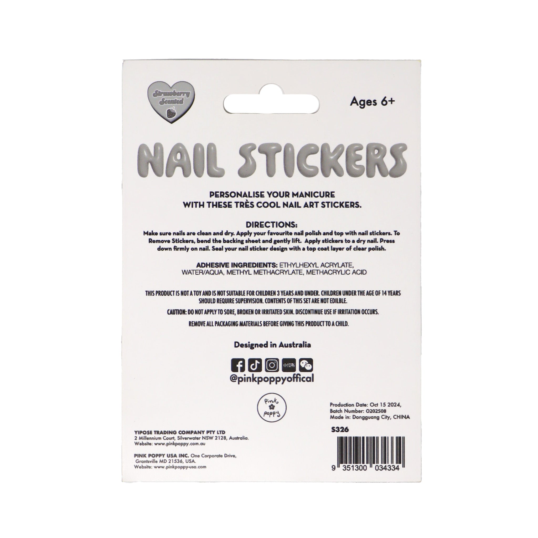 Personalise your manicure with Pink Poppy's Dreamland Scented Nail Stickers. Scented like the sweet smell of strawberries, these non-toxic, cruelty-free, and vegan-friendly stickers are perfect for personalising your nails. These stickers are comprised of charming illustrations including unicorns, stars, butterflies, hearts, and more, ensuring a fun and fabulous look. Pink Poppy's stickers make it easy and safe to create magical nail designs that are as unique as you are! They are simply fabulous.
