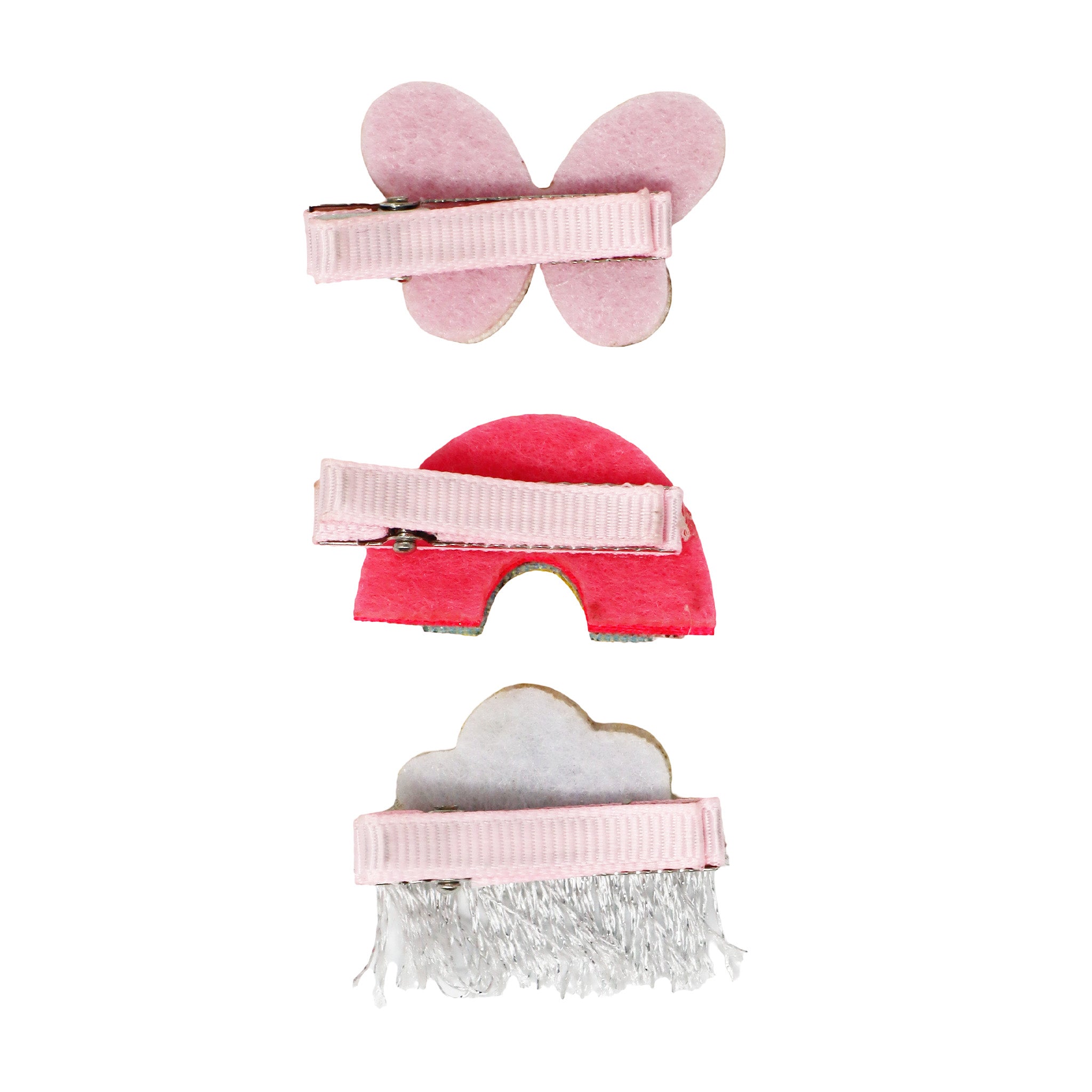 Feature 1: Fun hair clips in rainbow, butterfly, cloud with glittery fabric