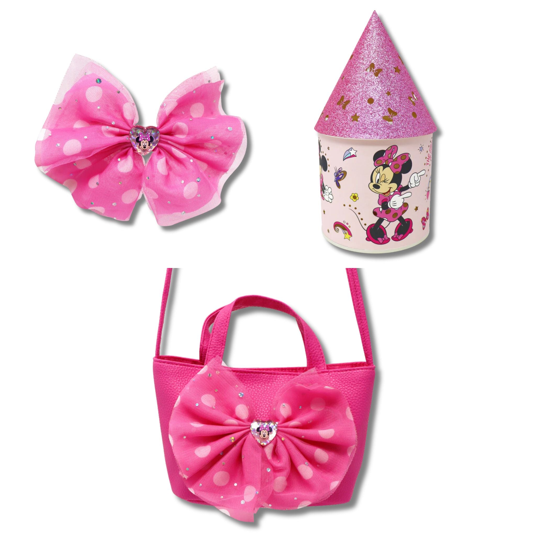 Disney Junior Minnie Bucket Handbag x 1 – A stylish and spacious handbag featuring Minnie’s signature bow, perfect for carrying essentials in adorable Minnie style.