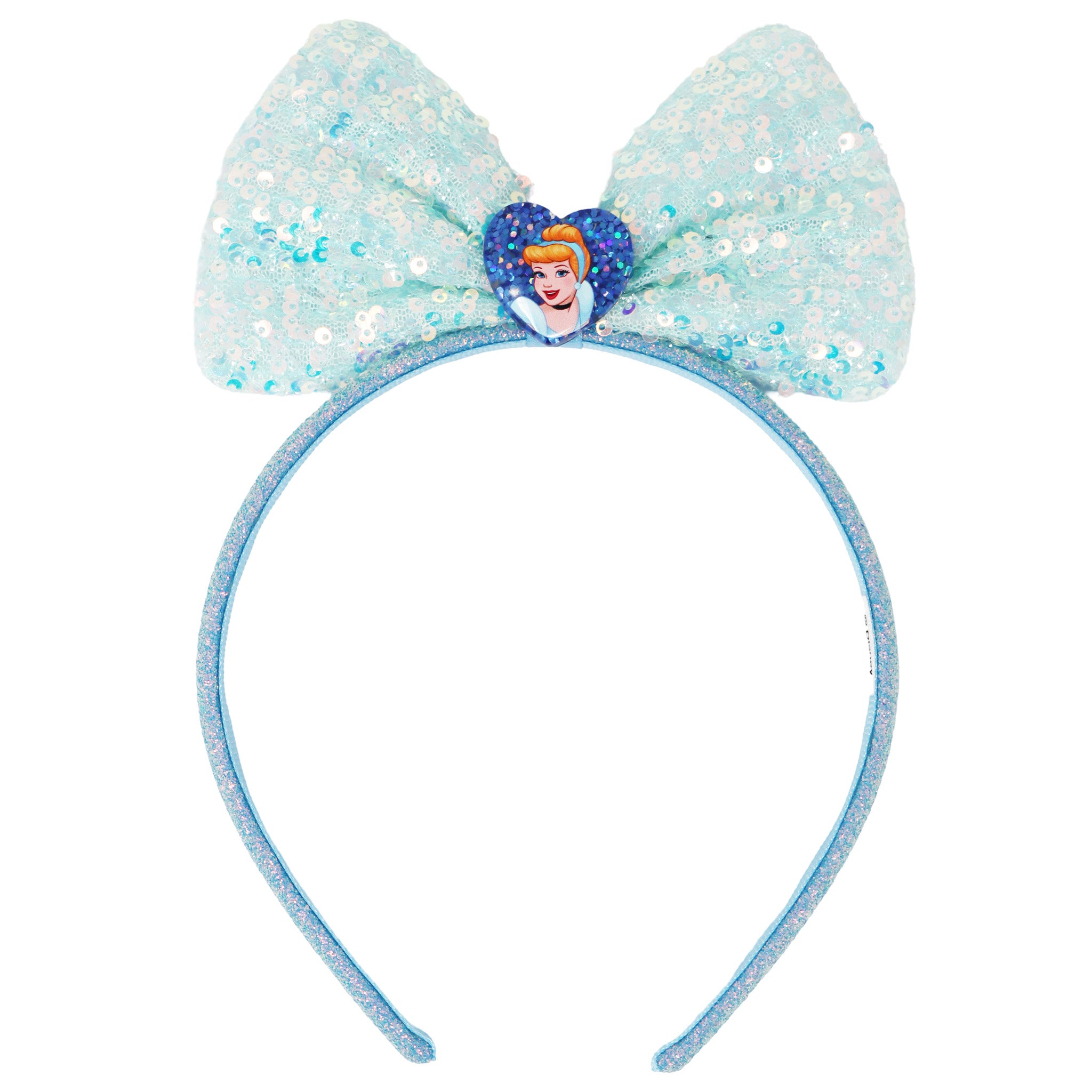 Add some princess magic to their hairstyle with this Disney Princess Cinderella Headband. Featuring a heart shaped gemstone with the magical Cinderella printed on. Fixed to a comfortable thin glitter alice band that is lined with cross-grained ribbon to ensure comfort. With a sparkling sequin fabric bow that shines from every angle, this is the perfect addition to your little one's outfit to add a magical sparkle.