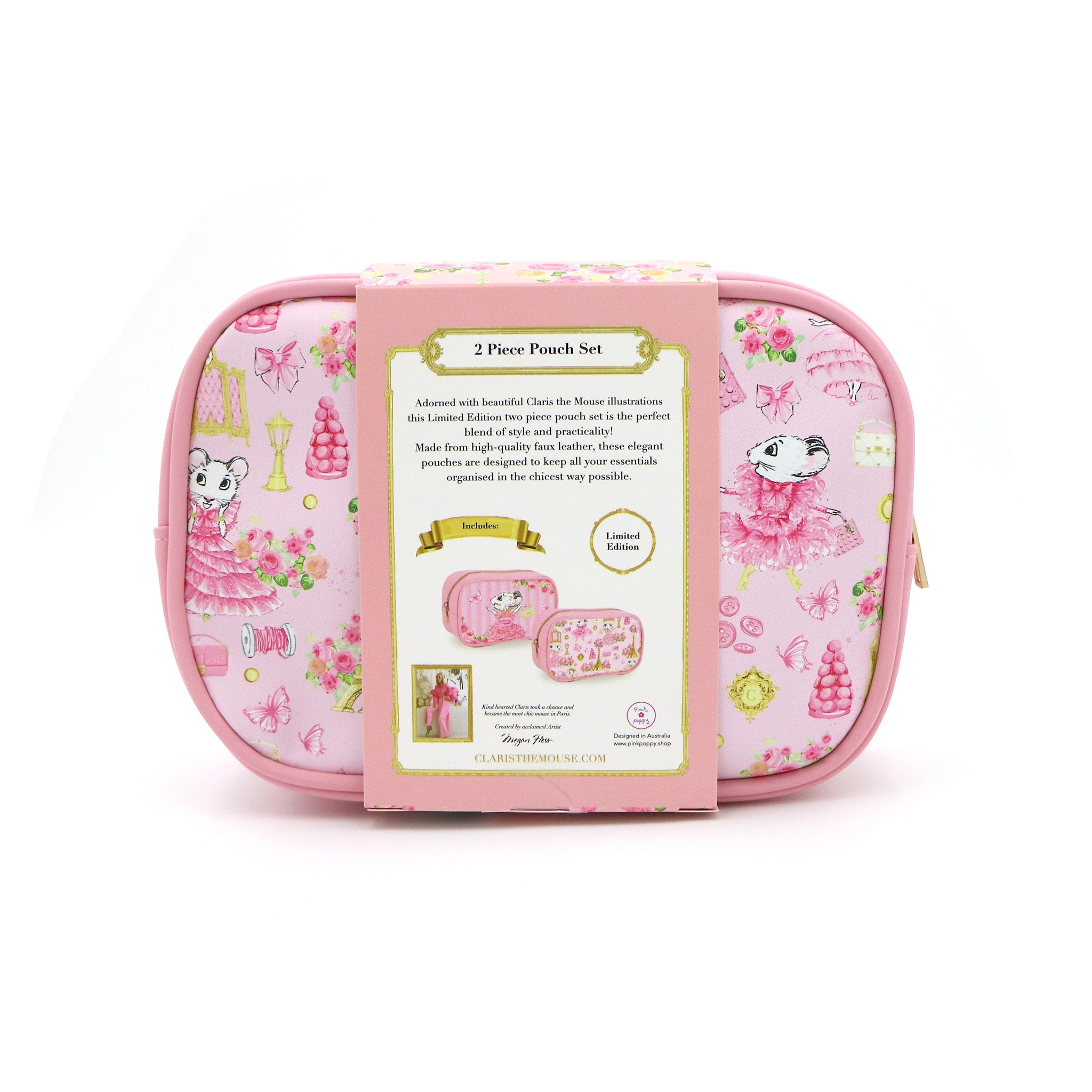Pink Poppy’s Claris the Chicest Mouse in Paris Cosmetic Pouches are the perfect blend of style and practicality! Made from high-quality faux leather, these elegant pouches are designed to keep all your essentials organised in the chicest way possible.