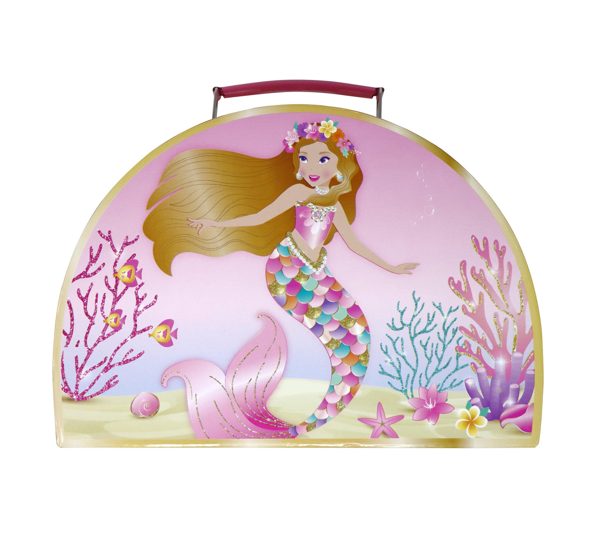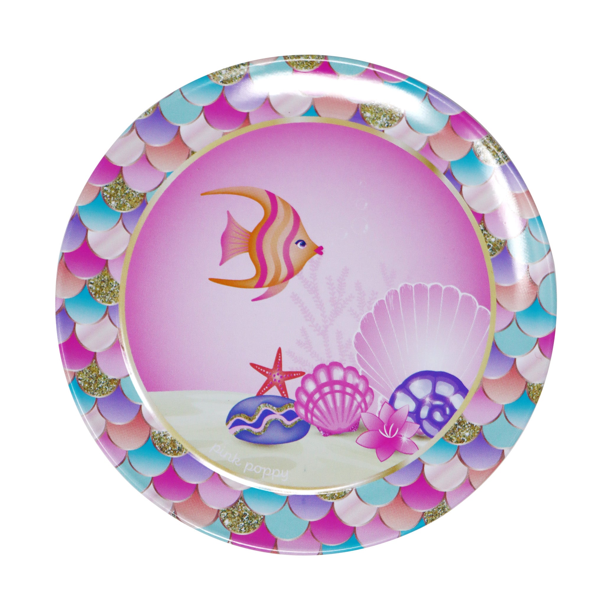 Pink Poppy's Enchanting Mermaid Tin Tea Set. Inspired by the magical world of mermaids. This tin tea set comes with everything your little one needs to host a tea party for 2. Includes 9 pieces made from lightweight tin which is safe for clumsy little hands. Stored in a beautiful matching carry case. Ideal for creative & imaginative play indoors & outdoors.