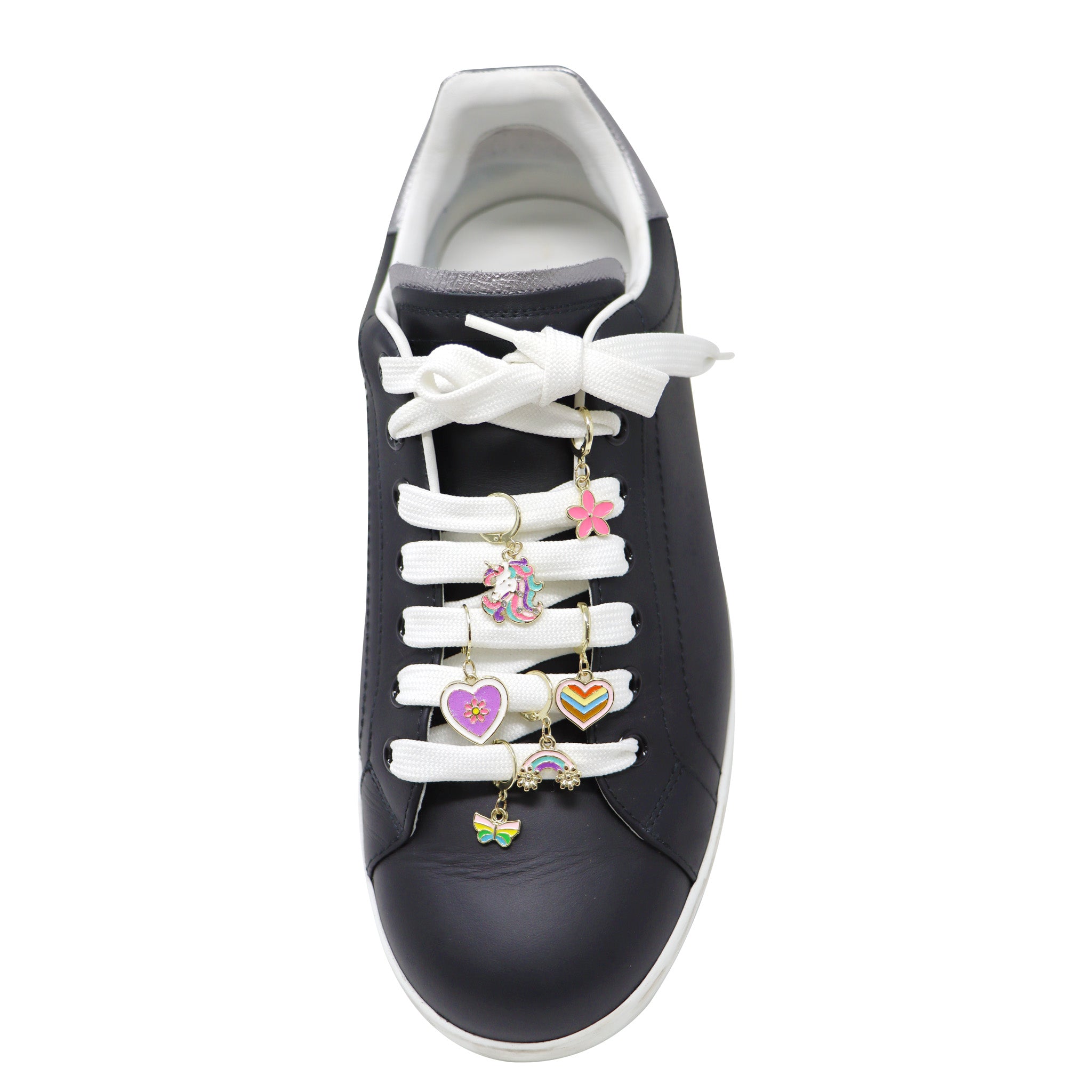 Pink Poppy's Rainbow Unicorn 6-pack Shoelace Charm Set features 6 beautifully crafted unique charms including a unicorn, rainbow, butterfly, flower, and 2 heart styles. Designed to easily attach to your shoelaces, you will be showcasing your individual style in seconds. These multi-use charms are also known to be attached to bags, clothes, or even hair!