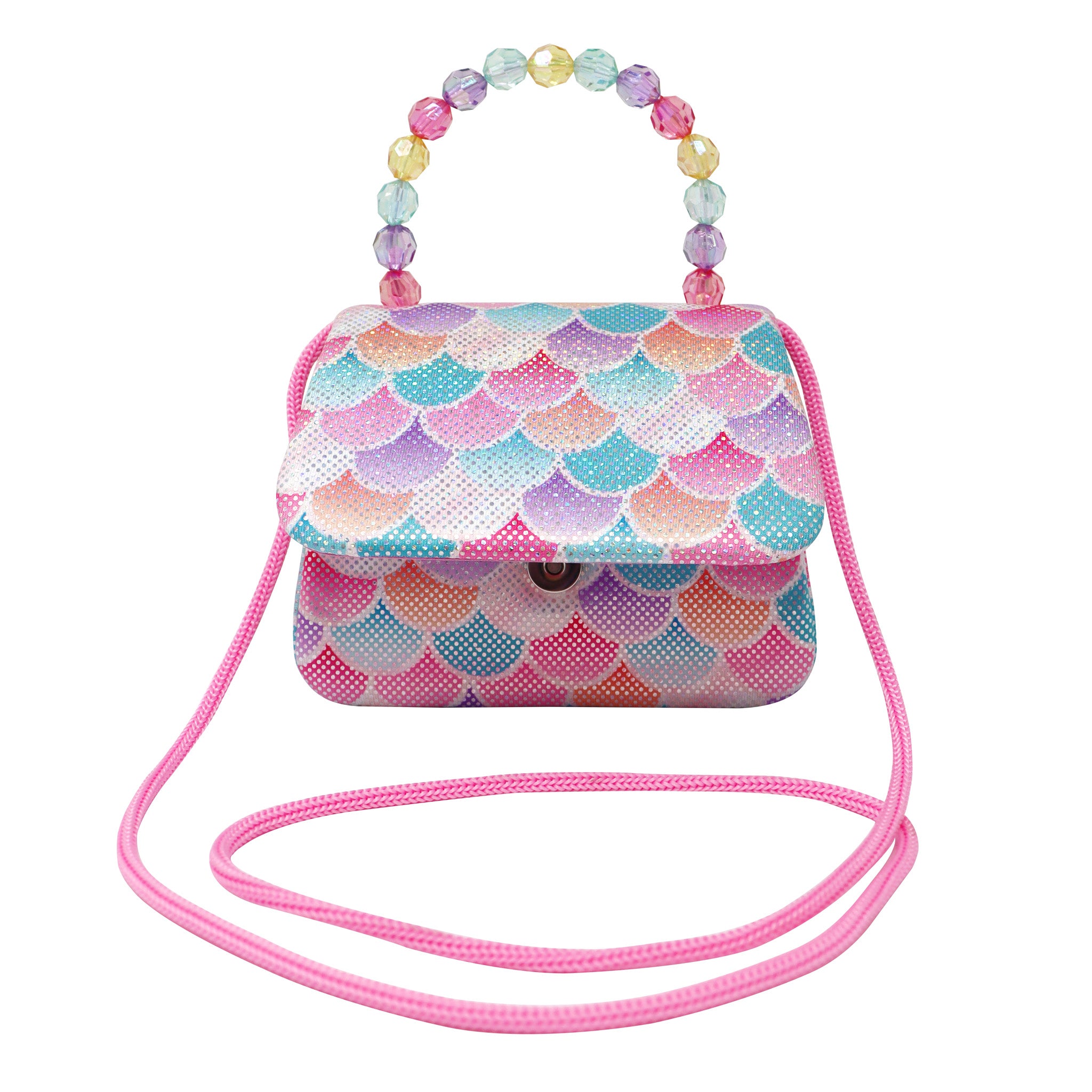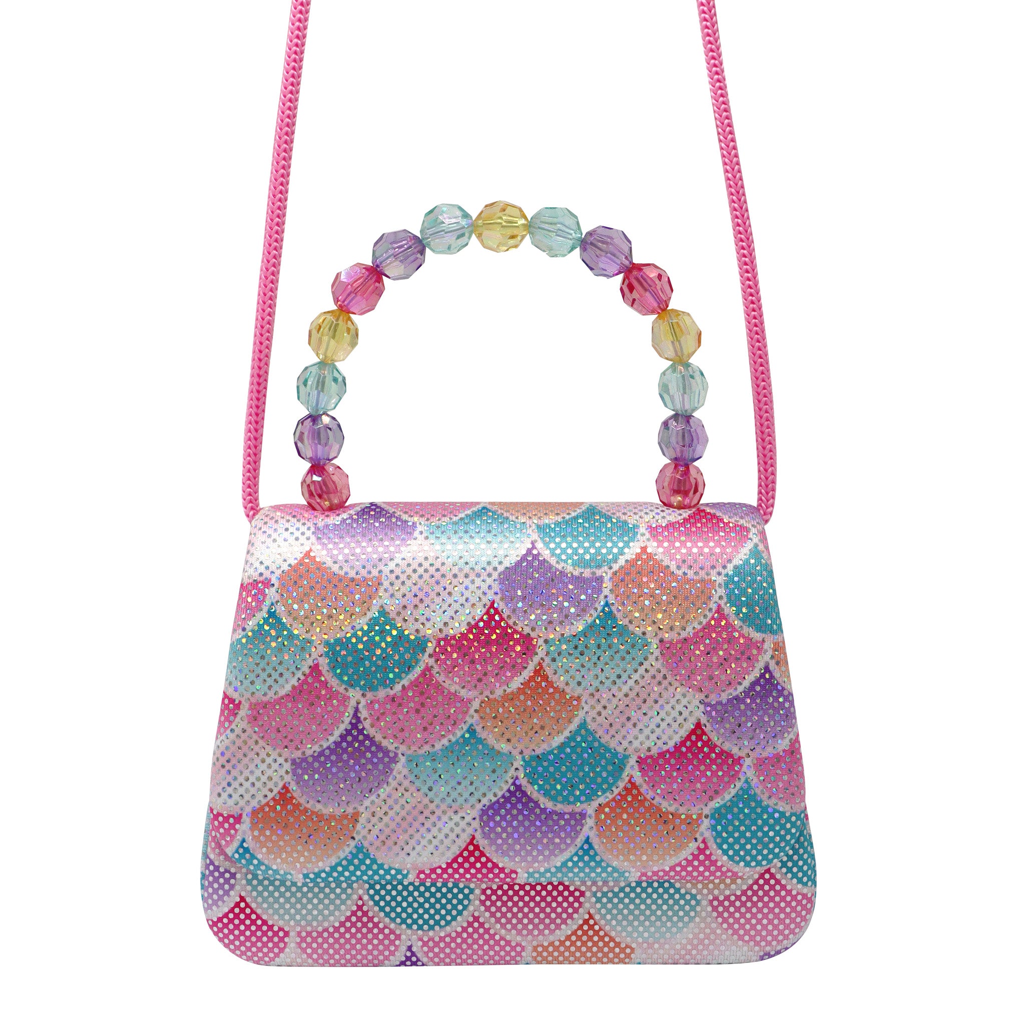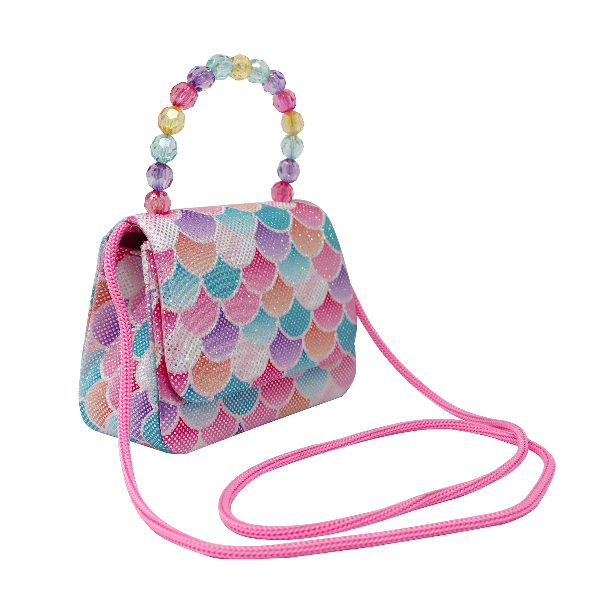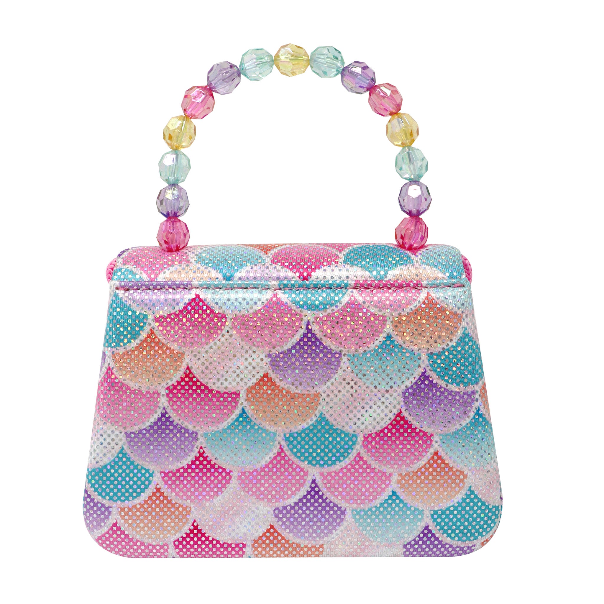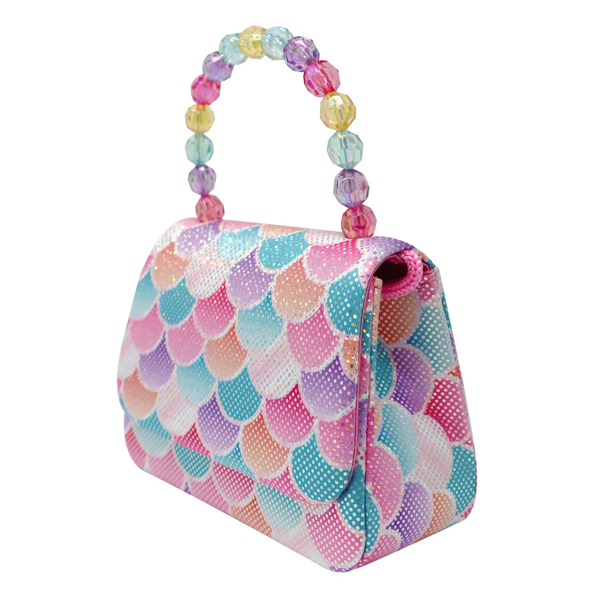 This Iconic Pink Poppy's Shimmering Mermaid Handbag is decorated in shiny fabric with fun mermaid scale prints.
