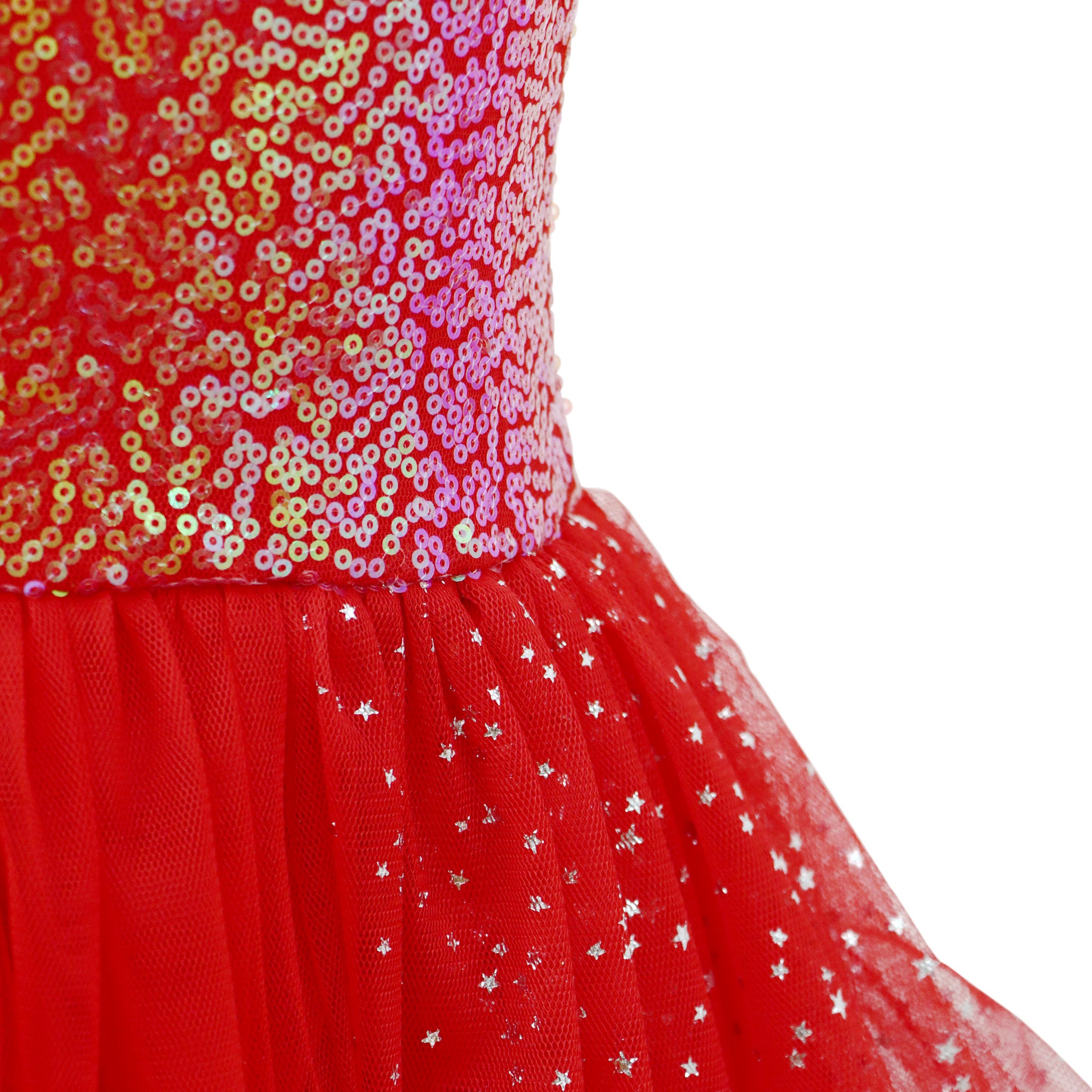 Make their day magical with Pink Poppy's Twinkling Christmas Dress. The unique sinuous skirt design incorporates a beautiful red tulle with shinny silver stars scattered across the fabric. It is paired with a soft lining underneath to make them comfy and glamorous. The comfortable stretch jersey bodice is completed with sparkling iridescent sequins and is the perfect dress-up choice for all special occasions. This dress is the perfect Christmas gift!