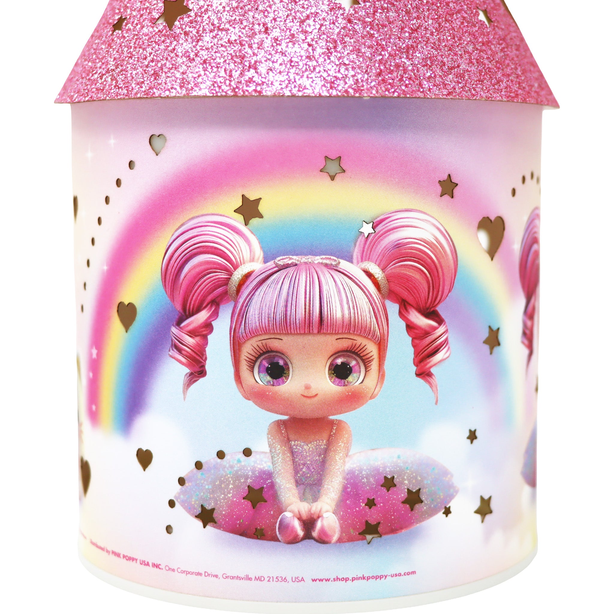 Designed with exclusive illustrations of every little girl’s new popular best friend, the pink-haired Sparkle Pop – this little ballerina is featured along with her adorable animal companions in the most gorgeous vibrant artworks. Finished with a sparkling pink glitter roof, this charming lantern is just as magical when switched off, doubling as a gorgeous bedroom décor piece.