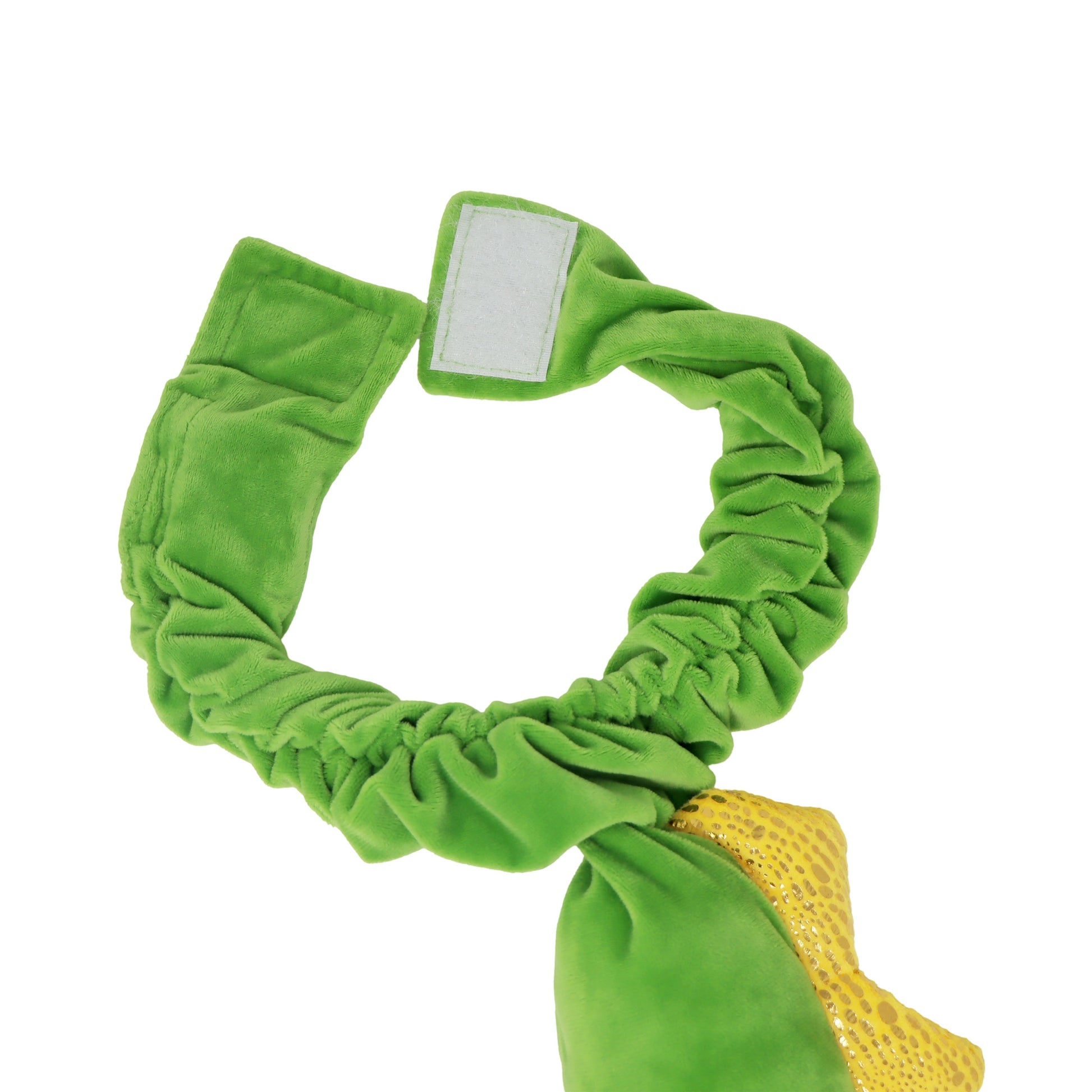 Pink Poppy's Dinosaur Tail with Sound is perfect for little dino lovers. The soft plush green fabric is designed to mimic the vibrant and alluring tail of a real dinosaur! The comfortable stretch elastic waist fits around any outfit with velcro closure, one size fits most. With sparkly gold spikes on the top edge this tail will make your little one feel like a real life ferocious dinosaur! This tail comes with a sound chip that plays a dinosaur roar noise, the perfect addition to your little one's dress up.