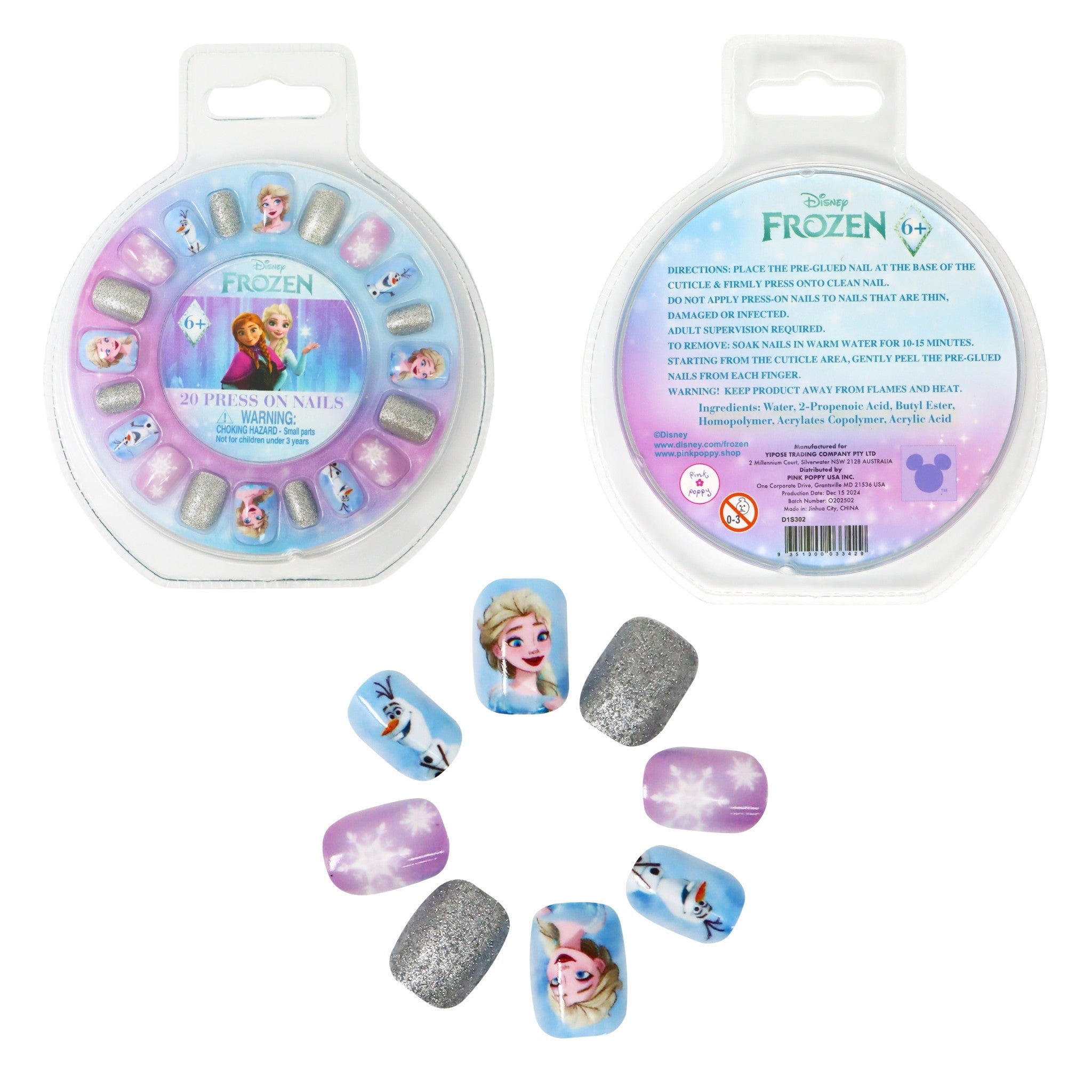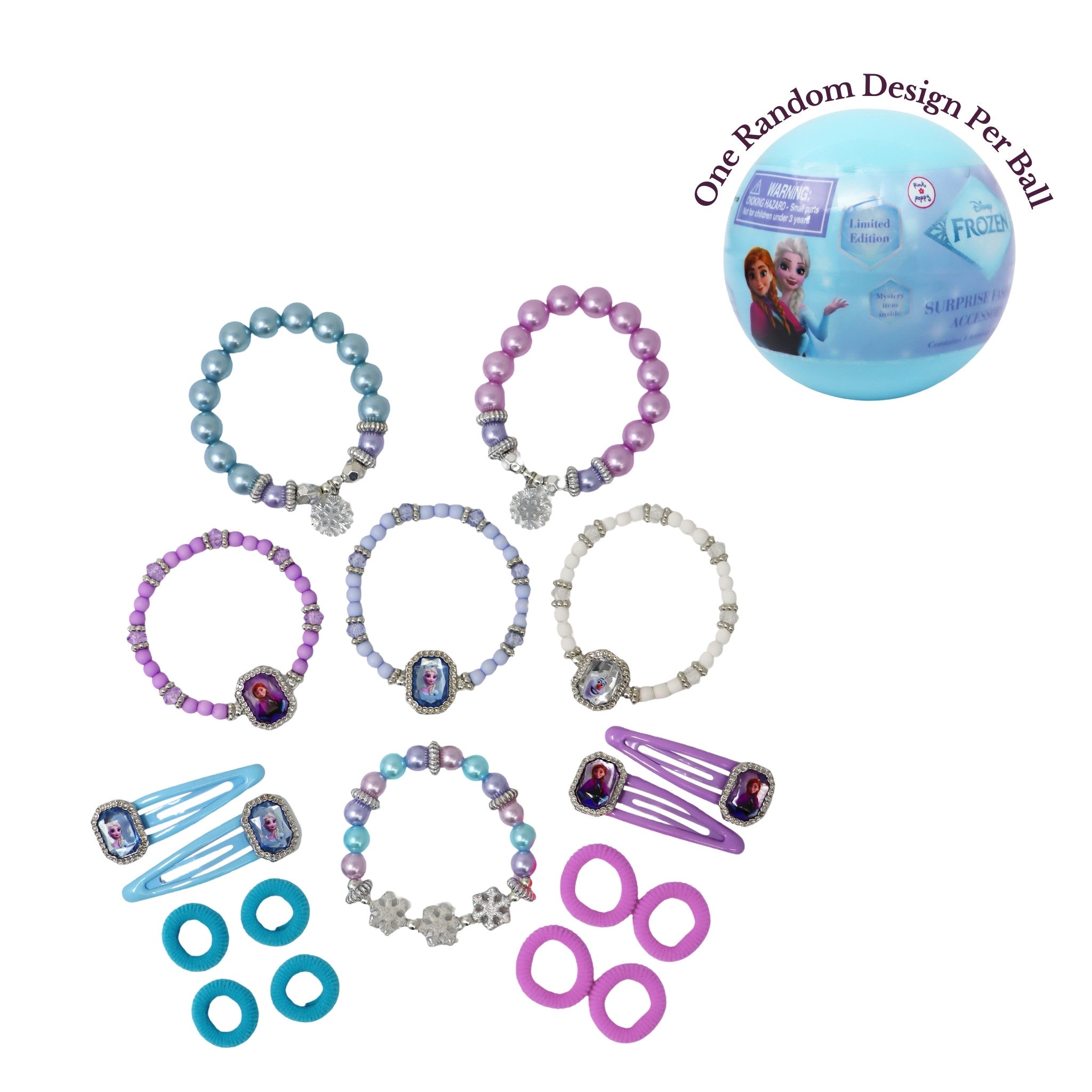 (8 designs available: 6 bracelet styles or 2 hair clip styles – 1 random design per ball) - 3 × Disney Frozen Press-On Nails (different designs)