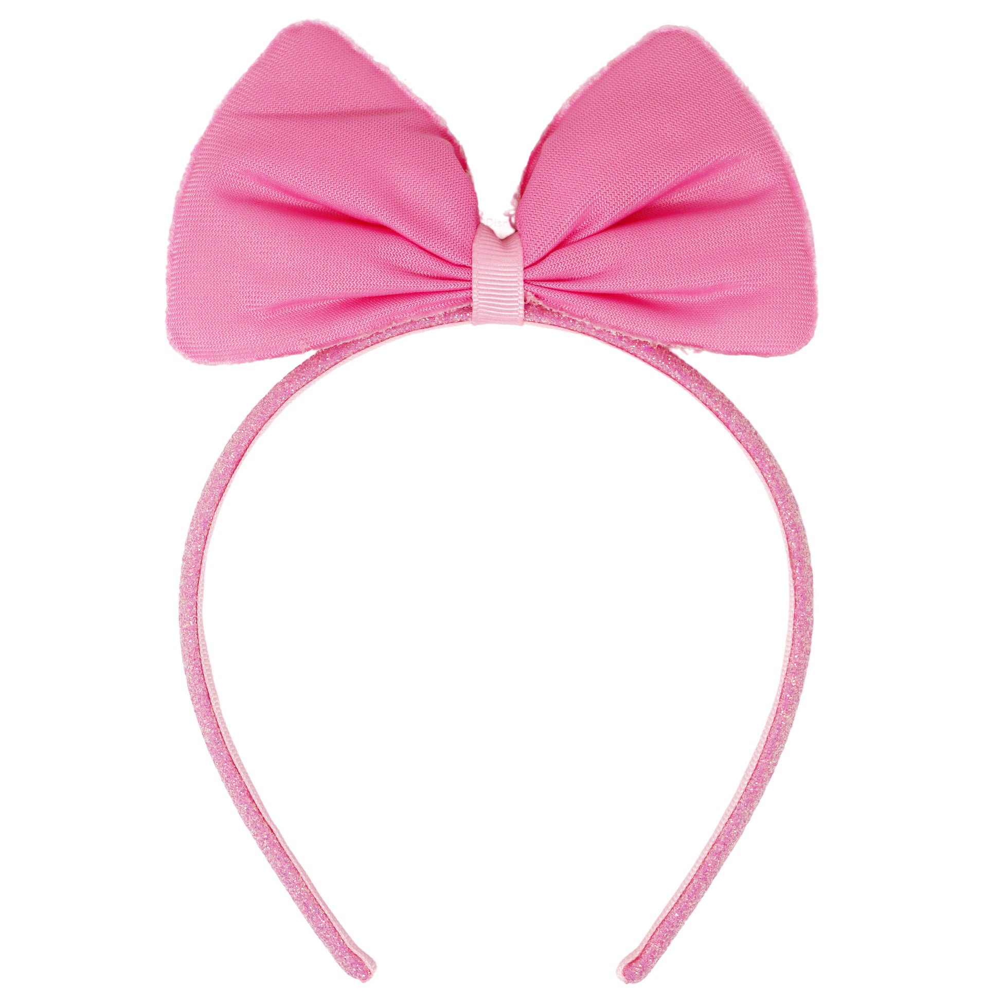Add some princess magic to their hairstyle with this Disney Princess Aurora Headband. Featuring a heart shaped gemstone with the magical Aurora printed on. Fixed to a comfortable thin glitter alice band that is lined with cross-grained ribbon to ensure comfort. With a sparkling sequin fabric bow that shines from every angle, this is the perfect addition to your little one's outfit to add a magical sparkle.