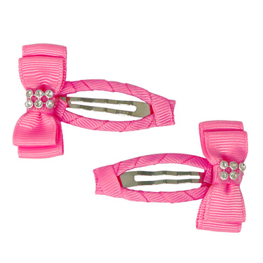 Pink Poppy's Ribbon Bow Hair Clips features a multi-layered bow completed with an embellished centre of sparkling rhinestones. Available in pink and blue, these snap clip style hair clips are soft, comfortable and easy to wear.